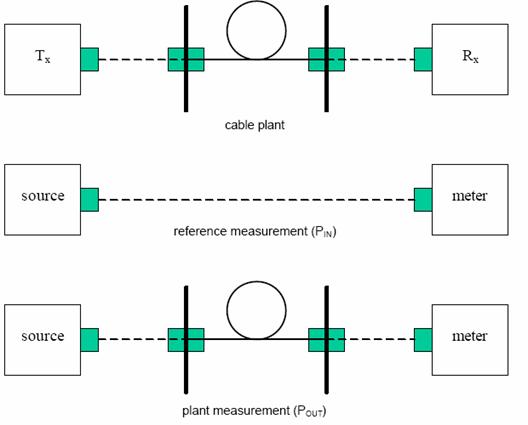 一般一条光纤链路由光缆、连接器和跳线组成。在测试中,一般认为跳线造成的损耗可以忽略不计,因此主要测试的目标为光缆以及链路中所包含的连接器所造成的损耗。