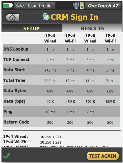 OneTouch AT 服务测试支持 IPv6,因此您可以轻松比较和对比您的 IPv4 和 IPv6 有线和无线网络的性能。
