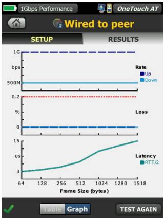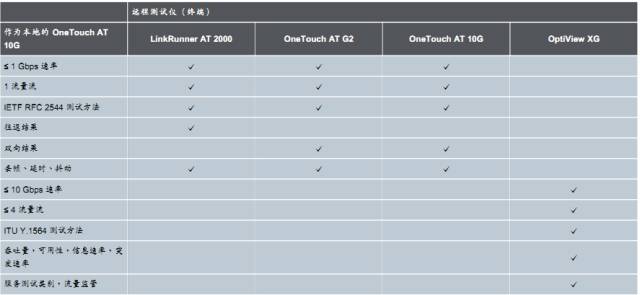 带 10G 模块的 OneTouch AT (1T10G-1000)配备 10G 和 1G 有线性能测试,可以验证和诊断端对端的网络路径性能。这些有线性能测试可在广域网和局域网及在站点和数据中心方便测量吞吐量、丢帧、延迟和抖动。